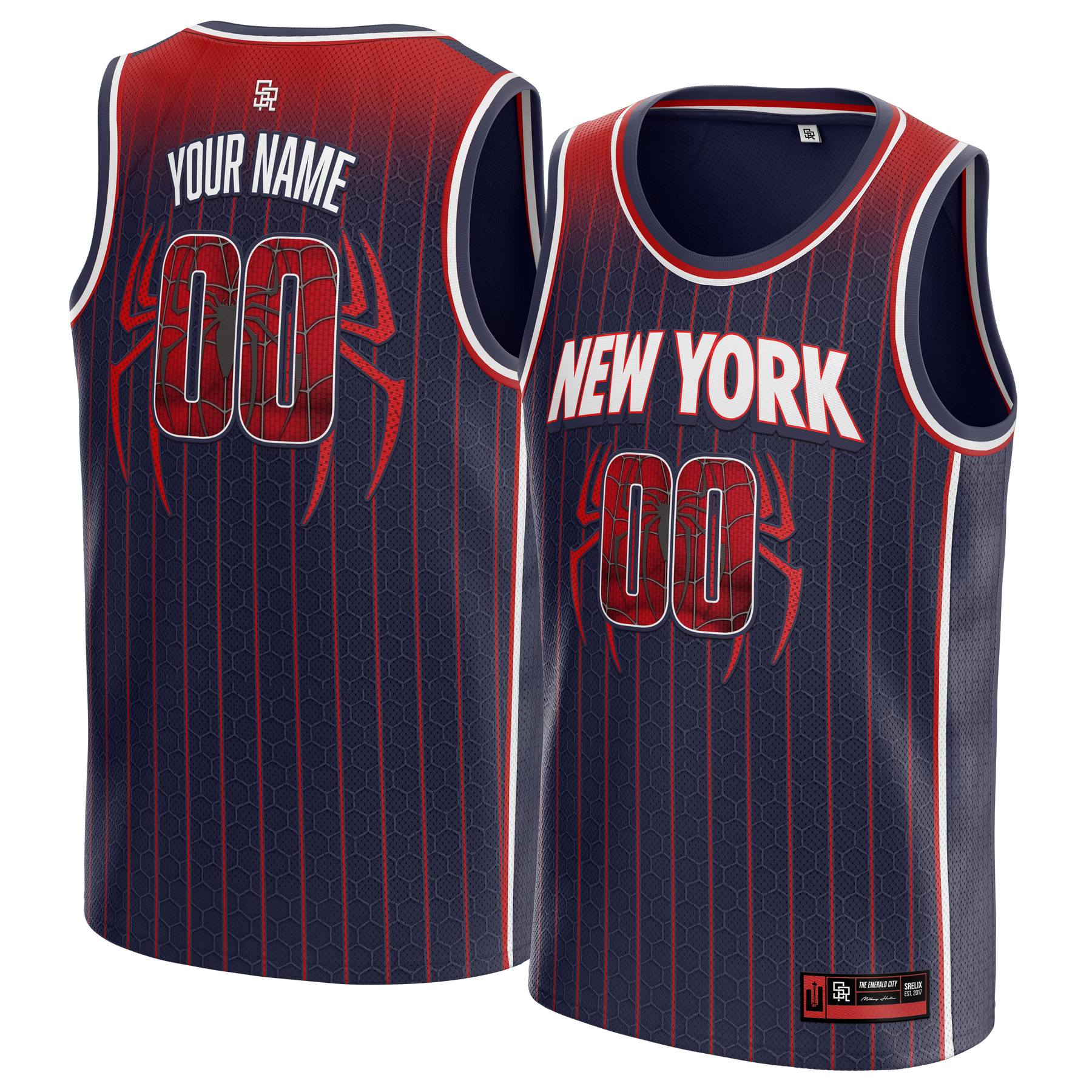 If you're looking for the most unique and trendy basketball style, then grab this SRELIX “Web” Jersey. This piece boasts a spider design, a gradient and pinstripe pattern, and a webbed wordmark to showcase your team’s identity. Once you put this jersey on, you’ll be sure to stand out in a crowd, while displaying your fandom for your favorite player/team.
